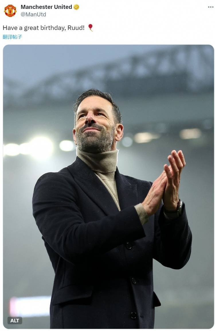 曼联官方社媒晒出范尼的照片,配文:“生日快乐,鲁德(范尼)!”